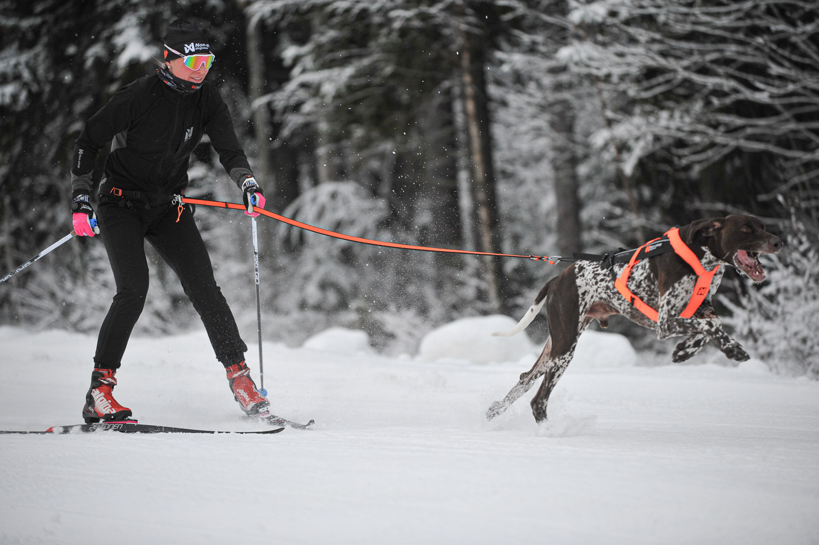 Developed with world-leading athletes in skijoring to enhance your performance. The belt helps to maintain a good skiing technique while skijoring with a dog that is pulling. The belt’s shape concentrates the pull force around the hips to save the lower back, while also providing the hips free movement for skating.